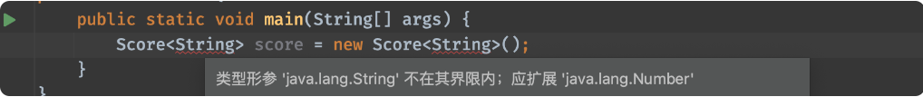 现在有一个新的需求,现在没有 String 类型的成绩了,但是成绩依然可能是整数,也可能是小数,这时我们不希望用户将泛型指定为除数字类型外的其他类型,我们就需要使用到泛型的上界定义: